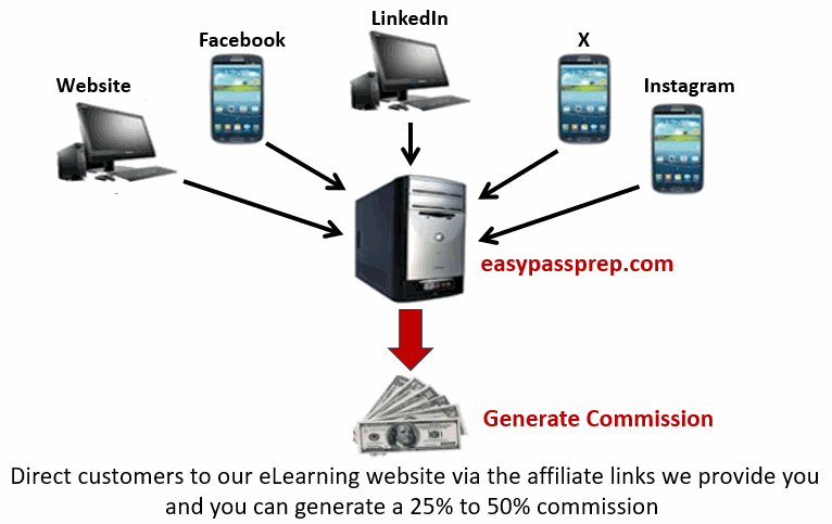 The CDP Affiliate Program is a great way for you to easily earn some extra income by promoting products found on our website, easypassprep.com. As a CDP Affiliate, you can receive a commission of 25% to 50% on “CDP Created” online courses and other products purchased by your referrals on our eLearning website.