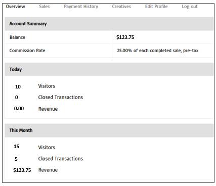 4. You can access your CDP Affiliate Dashboard from where you can track your related sales, payment history, and traffic related to your links. On the Affiliate Dashboard, we provide five links to other affiliate areas.